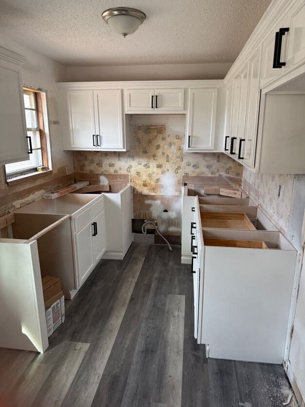 -kitchen cabinets installed and painted
